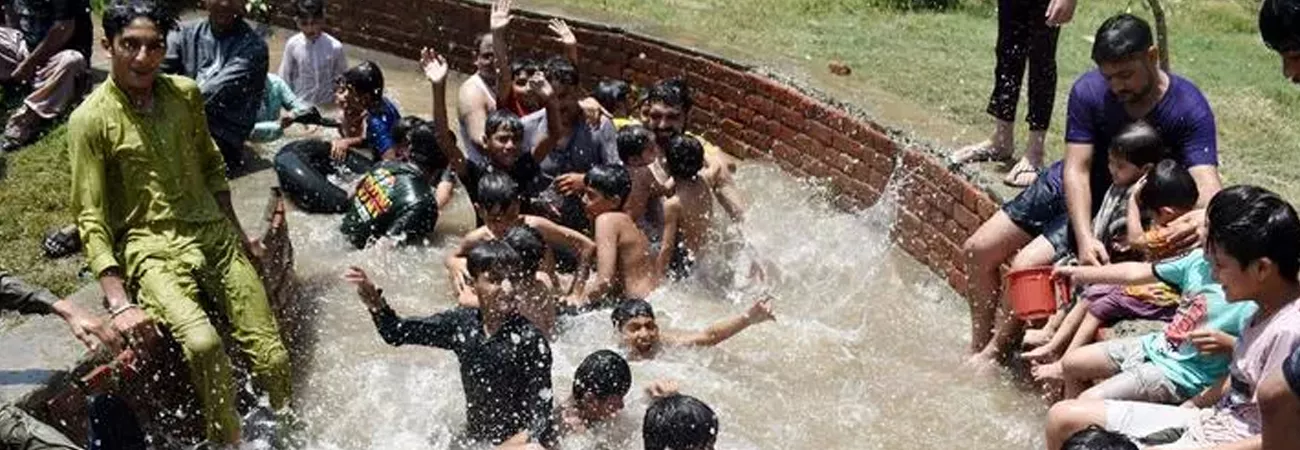 لاہور میں عالمی یوم اطفال پر بچے پانی  میں کھیل رہے ہیں۔ (شِںہوا)