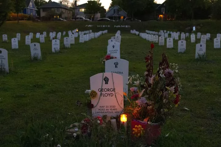 امریکی ریاست مینیسوٹا کے شہر منیپولس میں جارج فلائیڈ کی موت کی تیسری برسی کے موقع پر انکی قبر کے ساتھ پھول رکھے گئے ہیں۔(شِنہوا)