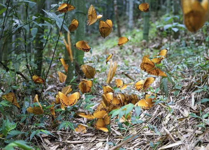 کن منگ (شِںہوا) چین کے جنوب مغربی صوبہ یون نان میں ہونگ ہی ہانی اور یی خوداختیار پریفیکچر میں واقع تتلیوں کی وادی میں لاکھوں تتلیاں ایک حیرت انگیز نظارہ پیش کررہی ہیں۔
