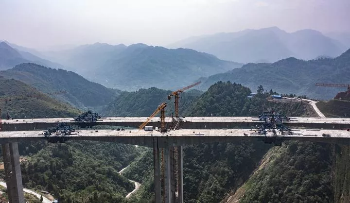 چین ، جنوب مغربی صوبہ گوئی ژو کے شہر بی جی کی کاؤنٹی جن شا میں زیرتعمیر چھنگ چی عظیم پل کو دیکھا جاسکتا ہے۔ (شِںہوا)