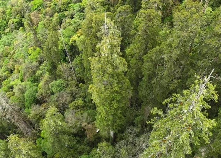 چین ، جنوب مغربی تبت خوداختیار خطے کے نی ینگ چی شہر کی بومی کاؤنٹی میں واقع یار لونگ زان بو گرینڈ کین یان کی قومی قدرتی افزائش گاہ میں دریافت ہونے والے 102.3 میٹرز بلند دیوہیکل صنوبر کے درخت کو دیکھا جاسکتا ہے۔ (شِںہوا)