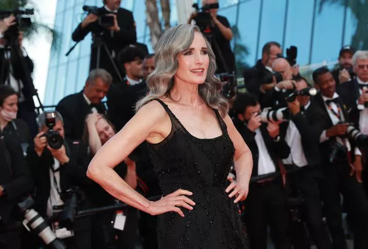 فرانس کے جنوبی شہر کانز میں منعقدہ 76 ویں کانز میلے میں اداکارہ اینڈی میک ڈوول کا فلم "دی اولڈ اوآک" کی اسکریننگ کے لیے آمد پر تصاویر کے لئے ایک انداز۔ (شِنہوا)