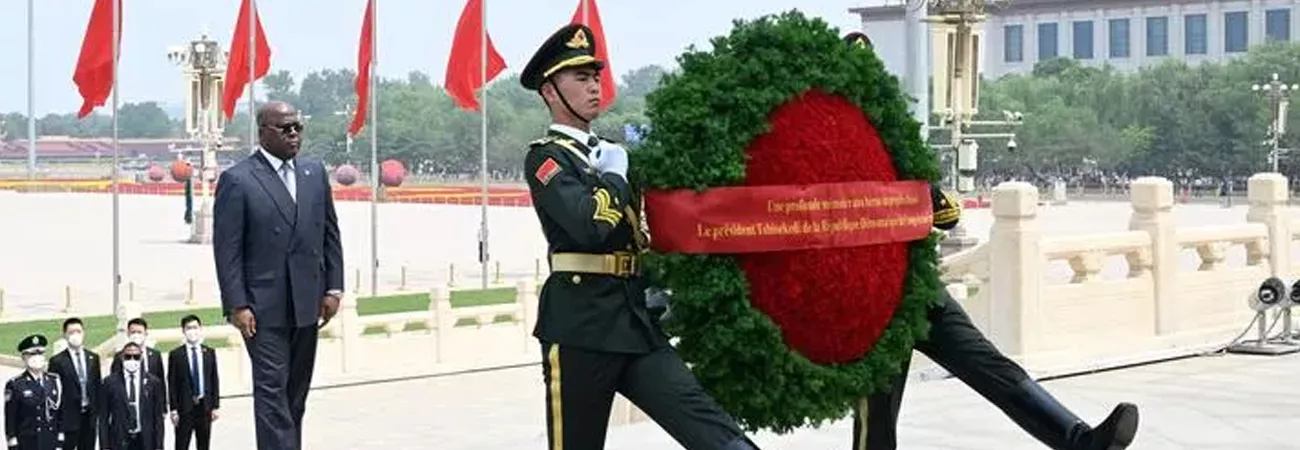 عوامی جمہوریہ کانگو(ڈی آر سی) کے صدر فیلکس انتونی ٹشی سکیڈی  ٹشی لومبو چین کے دارالحکومت بیجنگ کےتیان ان من سکوائر پر قومی ہیروز کی یادگار پر گلدستہ رکھنے جا رہے ہیں۔(شِنہوا)