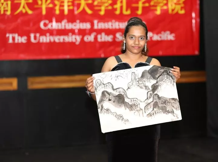 فجی ، سووا میں فجی کے کالج طلبا کے درمیان 22 ویں چینی برج مقابلے میں حصہ لینے والی ایک طالبہ کو دیکھا جا سکتا ہے۔(شِنہوا)