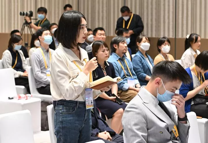 چین کےشمال مغربی صوبہ شانشی کےشہرشی آن میں چین-وسطی ایشیا سربراہ اجلاس کے بارے میں پریس بریفنگ  کے دوران ایک صحافی سوال کر رہی ہے۔(شِنہوا)