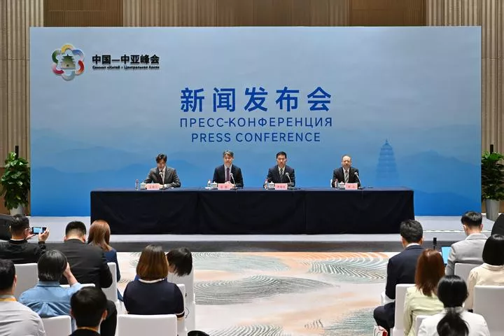 چین کےشمال مغربی صوبہ شانشی کےشہرشی آن میں چین-وسطی ایشیا سربراہ اجلاس کے بارے میں پریس بریفنگ کامنظر۔(شِنہوا)