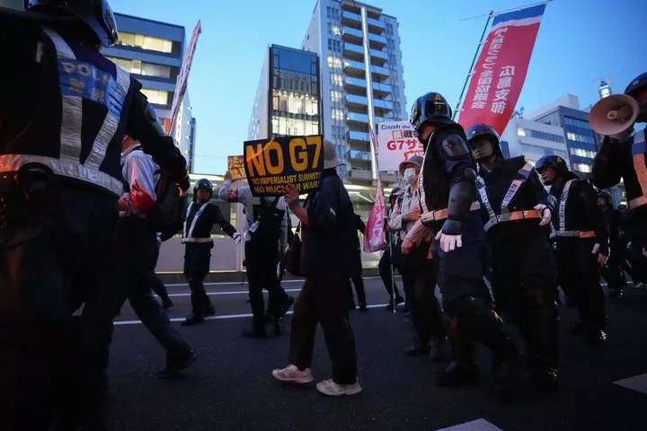 "کرش دی جی 7 سمٹ" اور "نو وارتھیمڈ کانفرنس" جیسے بینرز اٹھائے ہوئے مظاہرین نے "جاپان-امریکی لیڈروں کی بات نہیں" اور "جاپان میں امریکی فوجی اڈے واپس لے لو" جیسے نعرے لگائے۔