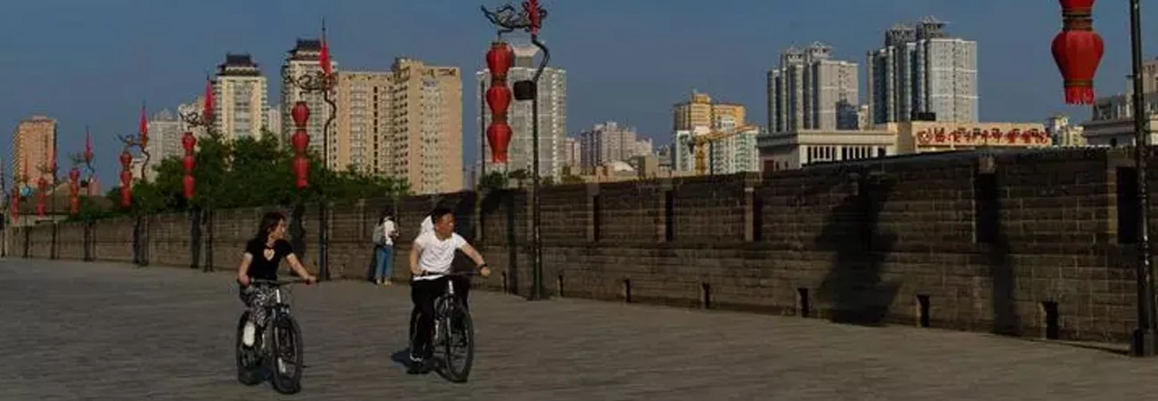 چین ، شمال مغربی صوبہ شانشی کے شہر شی آن میں چھان با ماحولیاتی زون میں واقع چھانگ آن ٹاور کا ایک منظر ۔(شِنہوا)