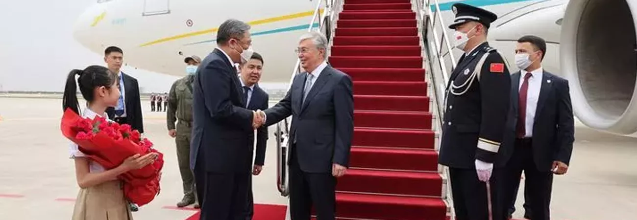 قازقستان کے صدر قاسم جومارٹ توکایف کاچین کے صوبہ شانشی کے شہرشی آن پہنچنے پر استقبال کیاجارہا ہے۔(شِنہوا)
