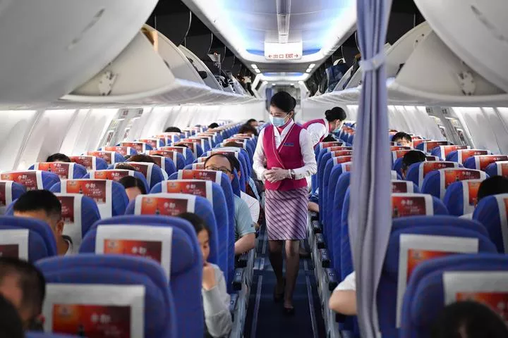 چین ، شمال مغربی صوبہ شانشی کے شہر شی آن میں شی آن ۔ ارمچی۔ اشک آباد پہلی مسافر پرواز کی روانگی سے قبل ائرہوسٹس حفاظتی انتظامات کی جانچ کررہی ہیں۔(شِںہوا)
