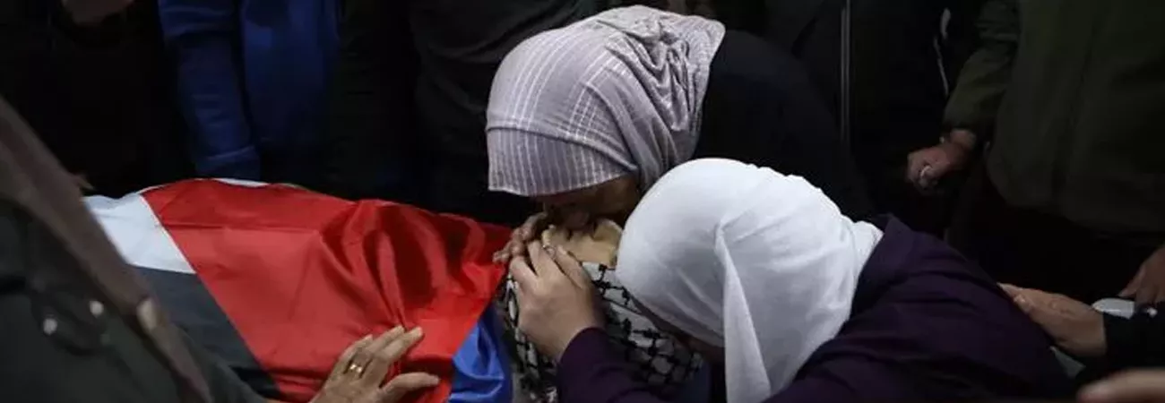 مغربی کنارے کے شہر بیت الحم کے ایک اسپتال میں فلسطینی  ایک نوجوان عمران الصباح کی میت پر سوگ منا رہے ہیں جسے اسرائیلی فوجیوں نے قتل کردیا تھا۔(شِنہوا)
