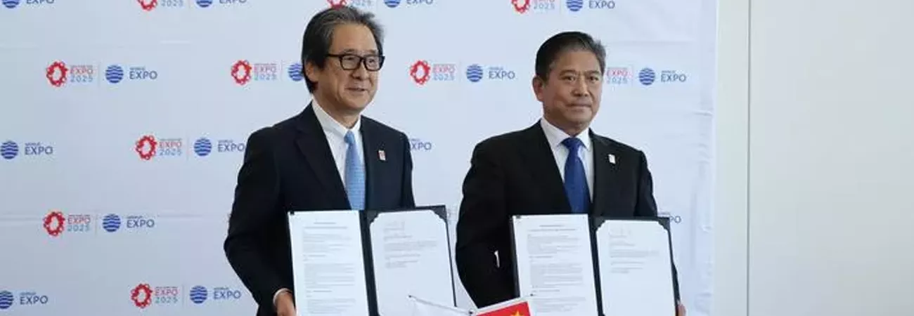 اس حوالے سے دستاویز پر چائنہ پویلین کے کمشنر جنرل اور چائنہ کونسل فار دی پروموشن آف انٹرنیشنل ٹریڈ کے وائس چیئرمین ژانگ شین فینگ جبکہ 2025 عالمی نمائش کے لیے جاپان ایسوسی ایشن کے سیکرٹری جنرل ہیرویوکی ایشیگے  نے دستخط کیے۔