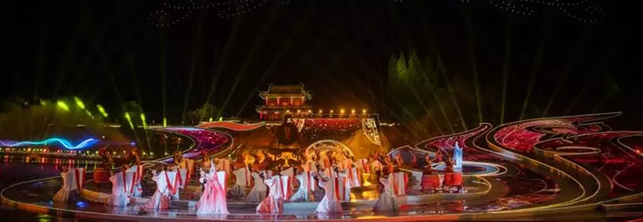 چین ، وسطی صوبہ ہوبے کے شہر جنگ ژو میں پہلے چھو ثقافتی میلے کی افتتاحی تقریب میں اداکارائیں فن کا مظاہرہ کررہی ہیں۔ (شِںہوا)