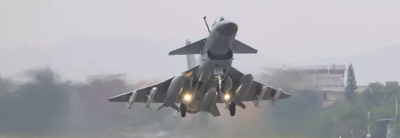 چین ، چینی پیپلز لبریشن آرمی کی مشرقی تھیٹر کمانڈ کی تائیوان جزیرے کے اطراف جنگی تیاریوں ، نگرانی اور فوجی مشقوں کے دوران ایک لڑاکا طیارہ اڑان بھررہا ہے۔ (شِںہوا)