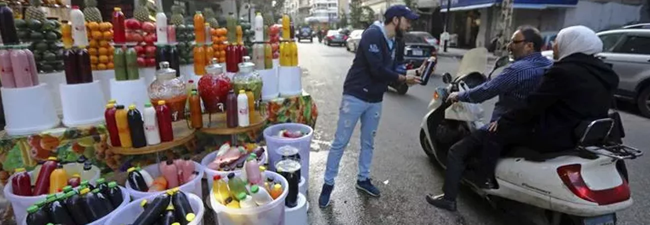 لبنان کے شہربیروت میں ایک جوس بیچنے والا اپنی مصنوعات کی تشہیر کر رہا ہے۔(شِنہوا)