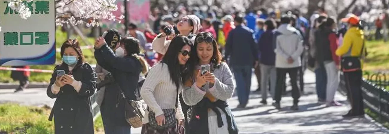 چین کے دارالحکومت بیجنگ کے یویوان تان پارک میں سیاح چیری کے پھول دیکھ رہے ہیں۔(شِنہوا)