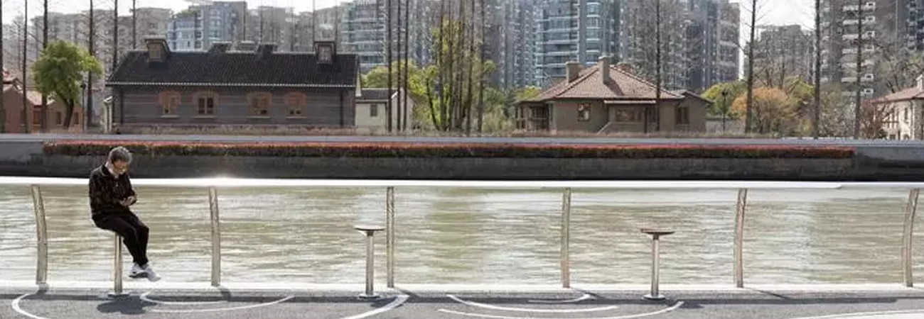 چین ، مشرقی شہر شنگھائی میں ایک شہری سوژو دریا کے کنارے اپنے فارغ وقت سے لطف اندوز ہورہا ہے۔(شِنہوا)