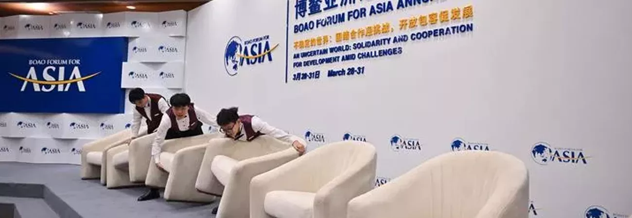 چین ، جنوبی صوبہ ہائی نان کے شہر بوآؤ میں بوآؤ فورم برائے ایشیا بین الاقوامی کانفرنس مرکز میں عملہ تیاری کررہا ہے۔(شِنہوا)