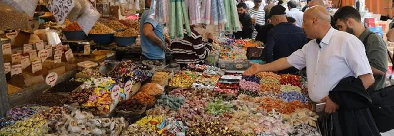 عراقی دارالحکومت بغداد کے شورجا بازار میں لوگ رمضان کے مقدس مہینے کے پہلے دن مٹھائی خرید رہے ہیں۔(شِنہوا)