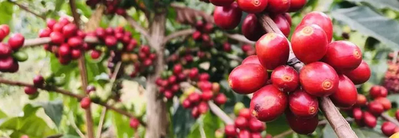 چین، جنوب مغربی صوبہ یون نان کے باؤ شان بیٹن کافی فارم میں کافی کے پھل دیکھے جاسکتے ہیں ۔ (شِنہوا)