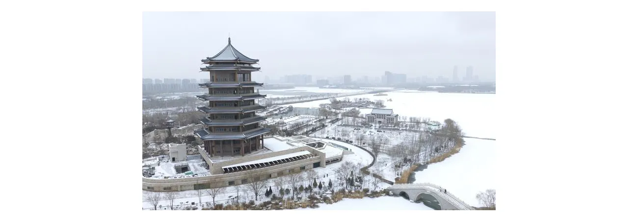 چین کے شمال مغربی ننگشیا ہوئی خوداختیار علاقے کے شہرینچھوان کے ایک پارک میں برفباری کا ایک منظر۔(شِنہوا)