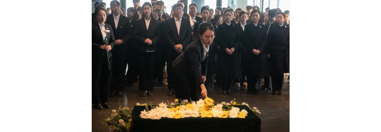 چین کےشمال مشرقی صوبے  حئی لونگ جیانگ  کے شہر ہاربن میں 10ویں قومی یادگاری دن کے موقع پر طلباء نانجنگ قتل عام کے متاثرین کے سوگ میں پھول چڑھا رہے ہیں۔(شِنہوا)