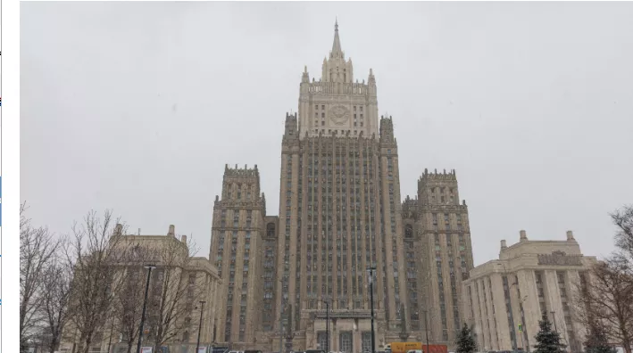 روس ، ماسکو میں روسی وزارت خارجہ کی عمارت کے قریب لوگ چہل قدمی کر رہے ہیں۔(شِنہوا)