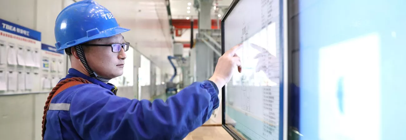 چین ، شمال مشرقی صوبہ لیاؤننگ کے شین یانگ  میں واقع  ٹی بی ای اے شین یانگ ٹرانسفارمر گروپ کمپنی لمیٹڈ میں ایک ملازم کام کررہا ہے۔ (شِنہوا)