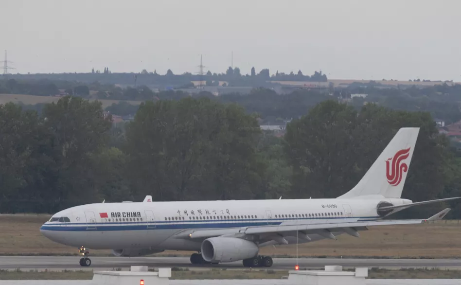 ائیر چائنہ کا ایک ہوائی جہاز ہنگری کے شہر بوڈاپیسٹ کے فیرنک لِزٹ انٹرنیشنل ائیرپورٹ پر اتر رہا ہے۔(شِنہوا)