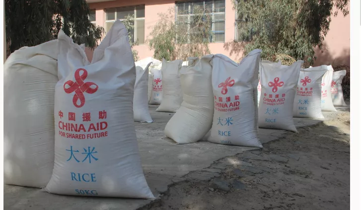 چین کی جانب سے افغانستان کے صوبے نمروز میں فراہم کردہ انسانی امداد کے تھیلے دیکھے جا سکتے ہیں۔(شِنہوا)