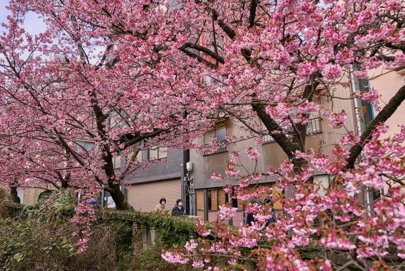 جاپان، شی زوکا کے علاقے اتامی میں لوگ چیری کے کھلتے پھولوں کے منظر سے لطف اندوز ہورہے ہیں۔(شِنہوا)