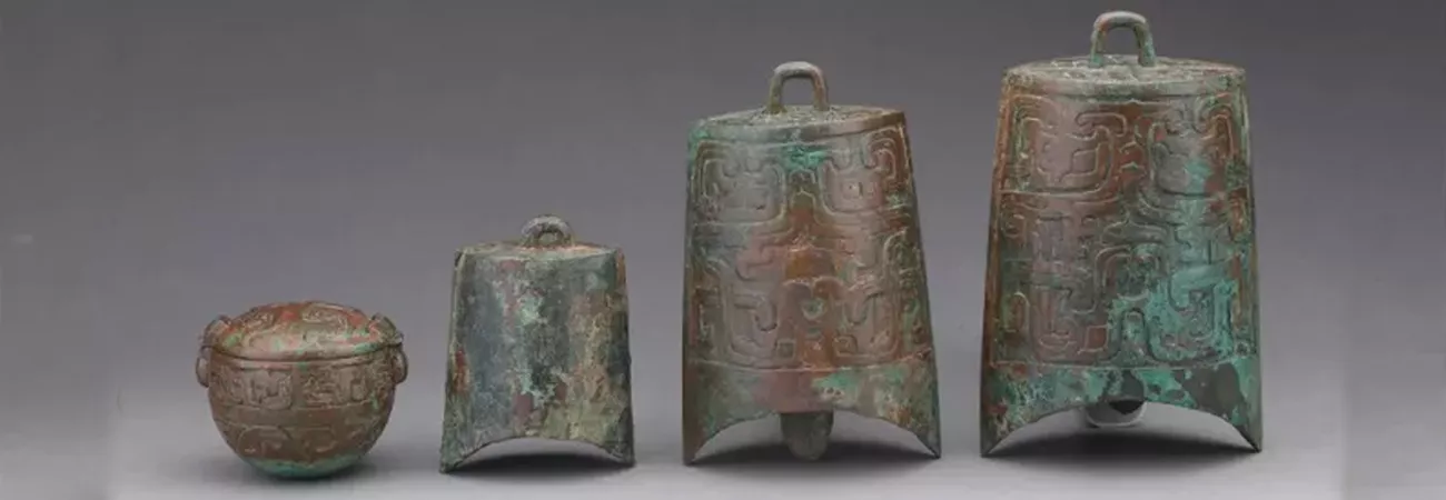 چین کے شمال مغربی صوبے شانشی میں تاوچھو کے مقام سے دریافت ہونے والے کانسی کے برتن دیکھے جاسکتے ہیں۔(شنہوا)