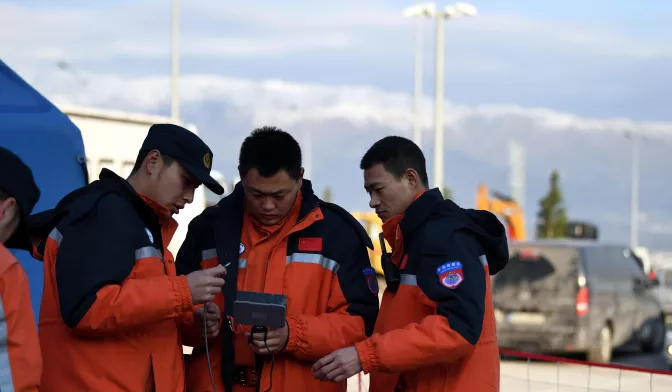 ترکی کے جنوبی صوبے ہاتے کے زلزلہ متاثرہ شہر انطاکیہ میں خاتون امدادی رکن اپنے کتے کے ساتھ  سرچ آپریشن میں مصروف ہے۔(شِنہوا)