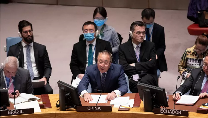 ژانگ نے بچوں اور مسلح تنا زعات بارے سکیورٹی کونسل کے اجلاس میں کہا کہ شام میں شدید زلزلے کے نتیجے میں غیر قانونی یکطرفہ پابندیوں کے باعث  بھاری سا مان اور تلاش اور امدادی آ لات کی قلت پیدا ہو گئی ہے۔
