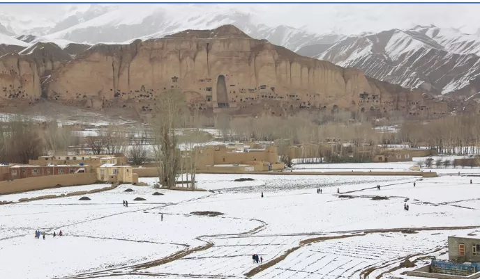 افغانستان، صوبہ بامیان میں برف سے ڈھکے بدھا مقام کو دیکھا جاسکتا ہے۔ (شِںہوا)