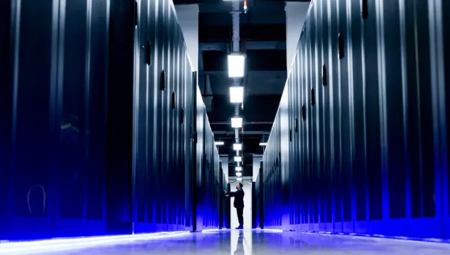 چین ، جنوب مغربی صوبہ گوئی ژو کے شہر گوئی یانگ میں گوئی ژو یونیورسٹی میں پبلک بِگ ڈیٹا کی اسٹیٹ کی لیبارٹری میں عملہ کا ایک رکن کام کررہا ہے۔ (شِنہوا)