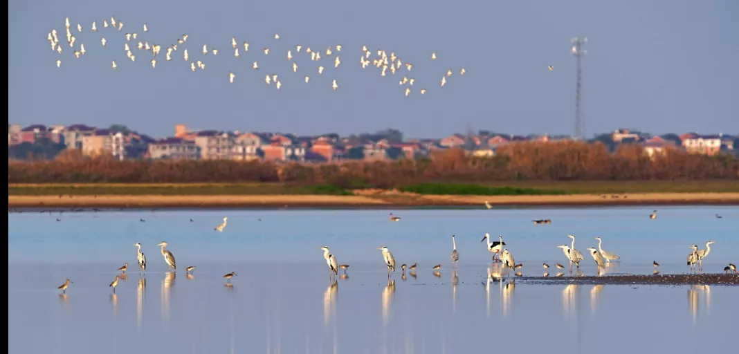 چین، مشرقی صوبہ جیانگ شی میں نان جی قومی ویٹ لینڈ افزائش کی پویانگ جھیل میں مہاجر پرندے دیکھے جاسکتے ہیں۔(شِںہوا)