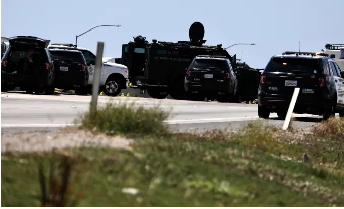امریکی ریاست کیلیفورنیا کے شہر لاس اینجلس کے علاقے فلرٹن میں پولیس افسران جائے وقوعہ پر تفتیش کر رہے ہیں جہاں فائرنگ کے تبادلے میں مسلح حملہ آور ہلاک ہواتھا۔(شِنہوا)