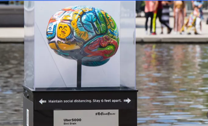 کینیڈاکے شہر ٹورنٹو میں ناتھن فلپس اسکوائر پونڈ میں برین پروجیکٹ آرٹ نمائش میں دماغ کا ایک ماڈل رکھا گیا ہے۔(شِنہوا)
