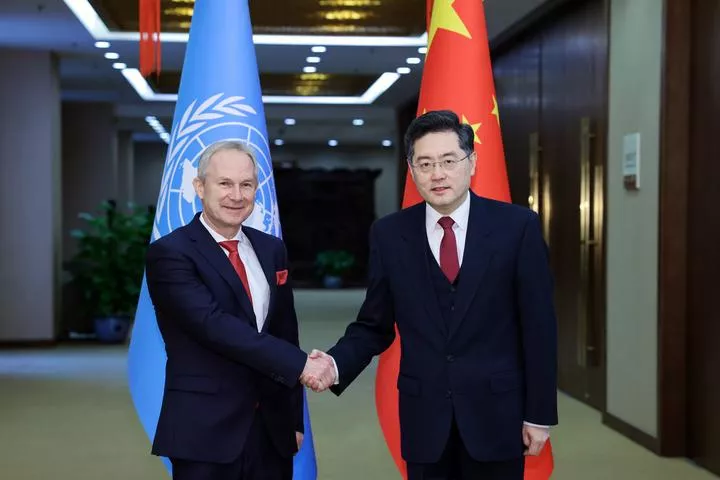 بیجنگ(شِنہوا) چین کے وزیر خارجہ چھن گانگ نے پیر کو تھائی لینڈ کے نائب وزیر اعظم اور وزیر خارجہ ڈان پرمودونائی سے ملاقات کی۔ ملاقات کے دوران چھن نے کہا کہ چین کھلے پن کی بنیادی ریاستی پالیسی پر عمل کرتے ہوئے اعلی معیار کی ترقی کرے گا اور ترقی کا ایک نیا نمونہ قائم کرے گا جس سے چین اور تھائی لینڈ کے درمیان تعاون کے نئے مواقع پیدا ہوں گے۔ چینی وزیر خارجہ نے تجویز پیش کی کہ دونوں ممالک باہمی سیاسی اعتماد کو نئی بلندیوں تک پہنچانے کے لیے اعلی سطح کے تبادلوں کو برقرار رکھیں، عملی تعاون کو نئی سطح پر لے جائیں اور عوامی تبادلوں میں نئی کامیابیوں کی حوصلہ افزائی کریں۔ چھن گانگ نے مزید کہا کہ دونوں ممالک کو عالمی ترقی کے اقدام اور عالمی سلامتی کے اقدام کو مضبوط کرنے کے لیے مل کر کام کرنا چاہیے، چین-آسیان ڈائیلاگ تعلقات کی 30ویں سالگرہ کے موقع پر ہونے والے چین-آسیان خصوصی سربراہی اجلاس کے اہم فیصلوں پر عمل درآمدکرتے ہوئے کثیر الجہتی تعاون میں نئی پیش رفت کرنی چاہیے۔