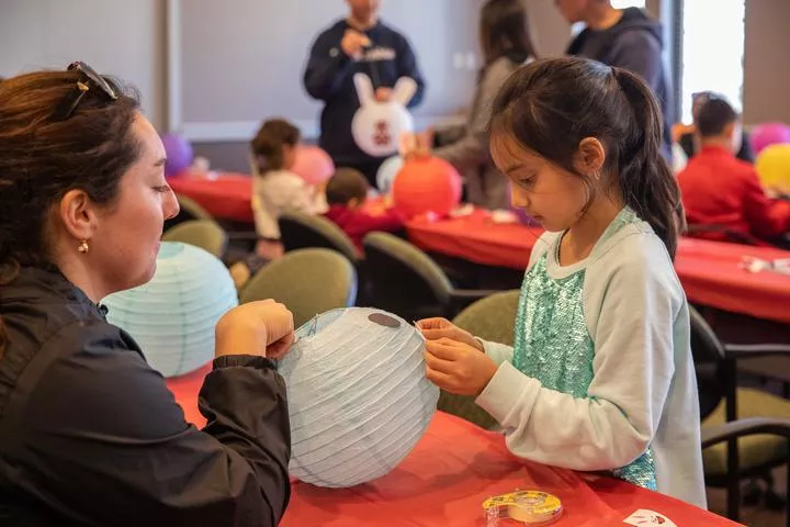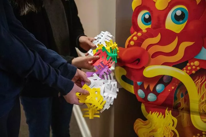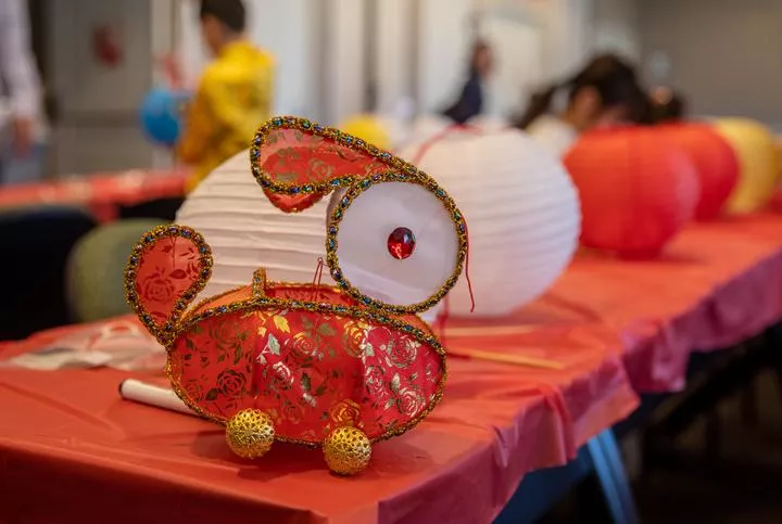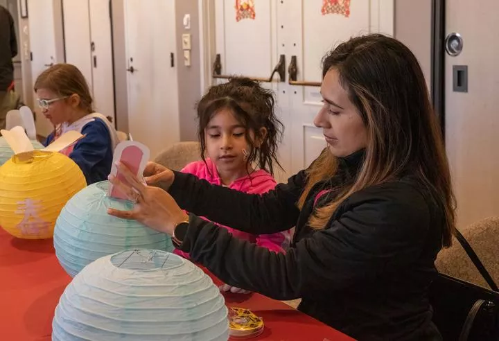 ٹیکساس کے ساؤتھ لیک میں لالٹین میلے کی ایک تقریب میں لوگ چینی نئے سال بارے کاغذ کی بنی اشکال دکھارہے ہیں۔ (شِںہوا)
