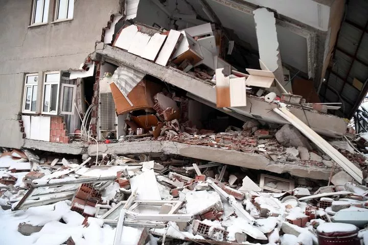 ترکی کے صوبے کہرامن ماراس کےضلع عِلبستان میں زلزلے کے بعد ایک تباہ شدہ عمارت دیکھی جا سکتی ہے۔(شِنہوا)