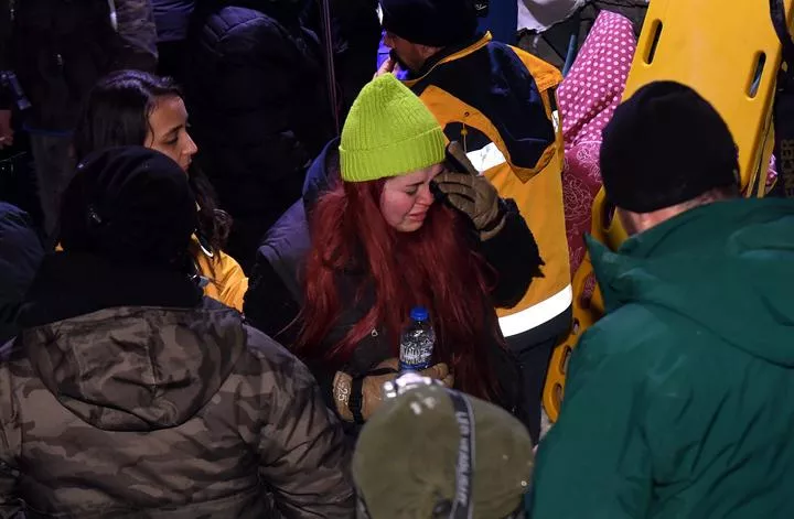 ترکی کے شہر کہرامن ماراس کے زلزلے سے متاثرہ ضلع عِلبستان میں ایک خاتون اپنے رشتہ دار سے متعلق خبرکا انتظار کر رہی ہے۔(شِنہوا)