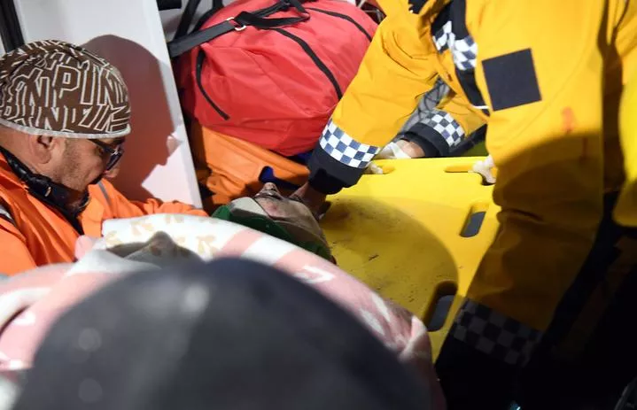 ترکی کے شہر کہرامن ماراس کے زلزلہ سے متاثرہ ضلع عِلبستان میں ایک تباہ شدہ عمارت کے ملبے سے زندہ بچ جانے والے شخص کو نکالا جا رہا ہے۔(شِنہوا)