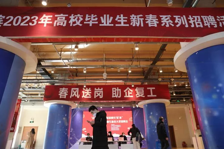 چین، شمال مشرقی صوبہ حئی لونگ جیانگ کے شہر ہاربن میں منعقدہ ملازمت میلے میں طالب علم ملازمت کے مواقع بارے معلومات حاصل کررہے ہیں۔ (شِںہوا)