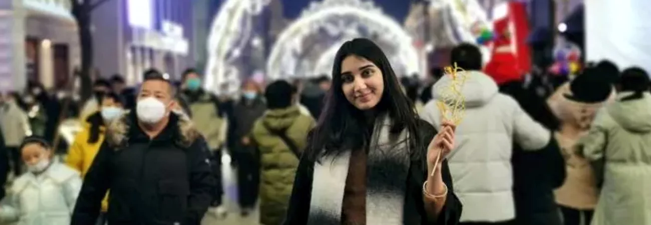 پاکستانی طالبہ دانیا چین کی چو نگ لو اسٹریٹ میں چینی روایتی لالٹین تہوار کے جشن میں شریک ہے۔(شِنہوا)