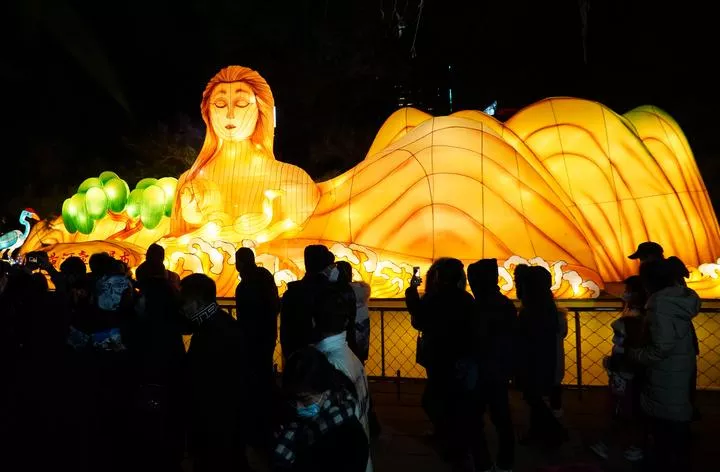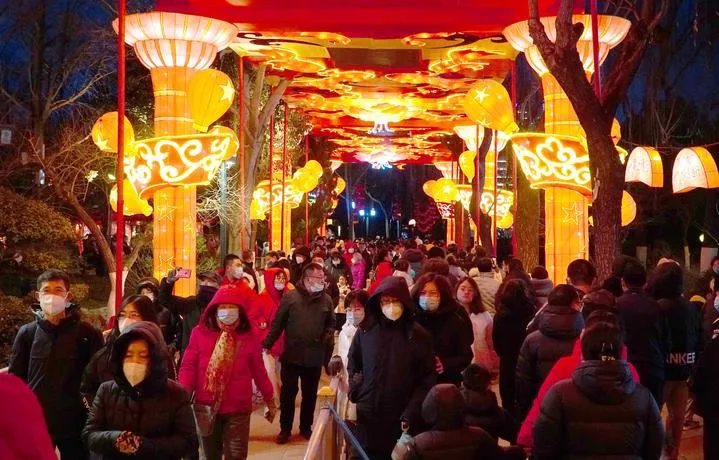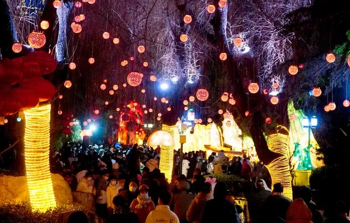 چین کے مشرقی صوبے شان ڈونگ کے دارالحکومت جینان کے باؤتو اسپرنگ پارک میں لوگ بہار کے تہوار کی چھٹیوں کے دوران  لالٹین شو سے لطف اندوز ہو رہے ہیں۔ (شِنہوا)