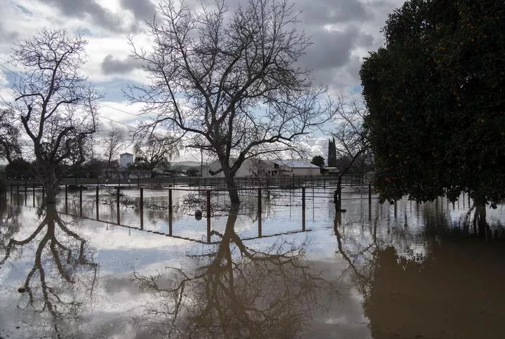 امریکہ ، کیلیفورنیا کی کاؤنٹی کونٹرا کوسٹا کے بایرون میں سیلابی علاقے کا ایک منظر۔(شِنہوا)