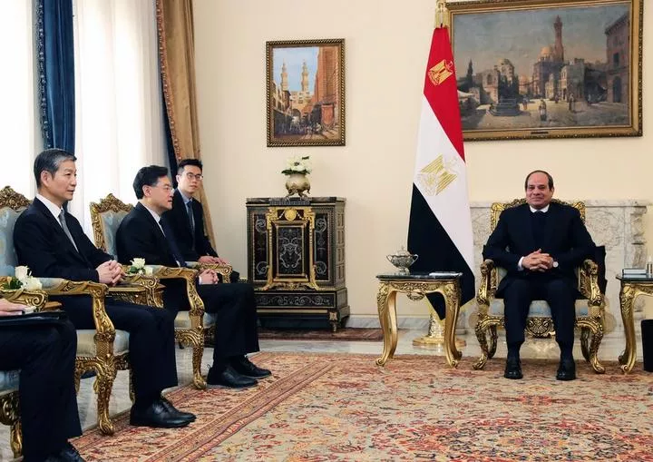 مصری صدر نے دارالحکومت قاہرہ میں چین کے دورے پر آئے ہوئے چینی وزیر خارجہ چھن گانگ سے ملاقات کی۔