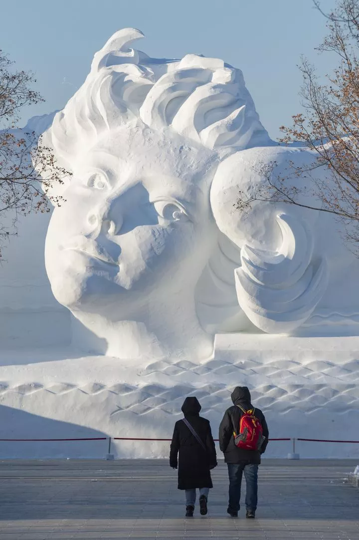 چین، شمال مشرقی صوبہ حئی لونگ جیانگ کے شہر ہاربن میں تائی یانگ  ڈاؤ آئی لینڈ انٹرنیشنل اسنو سکلپچر  ایکسپو کا لوگ دورہ کررہے ہیں۔(شِںہوا)